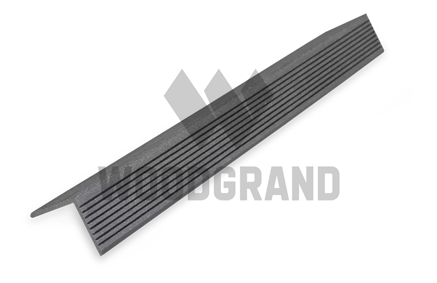 Монтаж уголка из ДПК производится с использованием саморезов, которые крепятся непосредственно к террасной доске или ступени. С помощью этого уголка вы сможете закрыть пространство между стеной и настилом, а также обработать торец террасной доски.